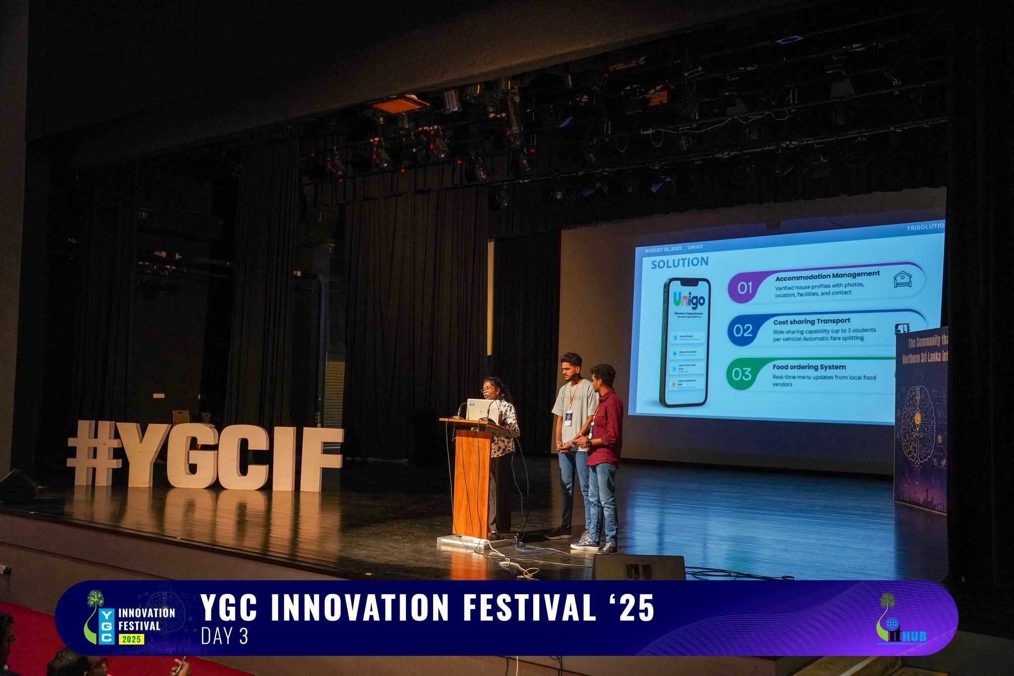 Following the boot camp, the teams took part in the YGC Innovation Festival, a three-day event packed with learning, teamwork, and inspiration. Students had the chance to meet and connect with passionate undergraduates, graduates, and entrepreneurs from all over Sri Lanka, all working towards turning their ideas into reality.