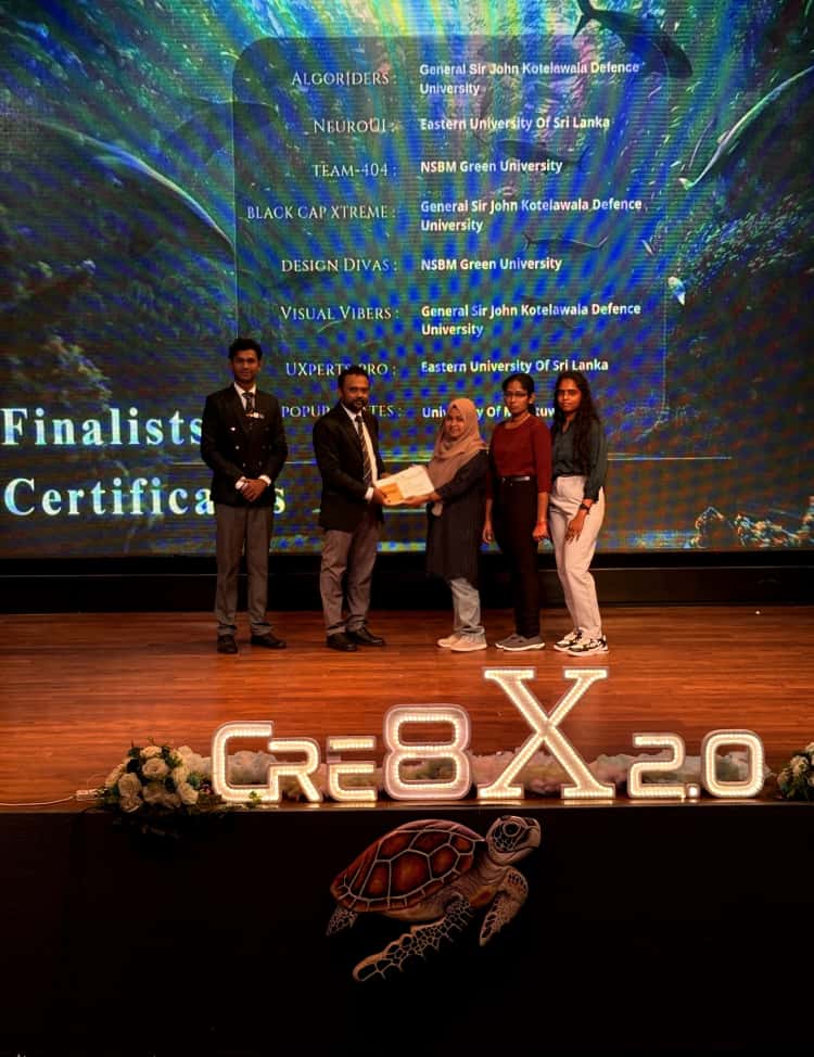 Students from the 2021/2022 batch of Trincomalee Campus, Eastern University, participated in Cre8X 2.0, the National UI/UX Design Competition organized by General Sir John Kotelawala Defence University (KDU). It was not just a design competition, but a creative journey that inspired students to think differently, work together, and push their design skills to new heights.