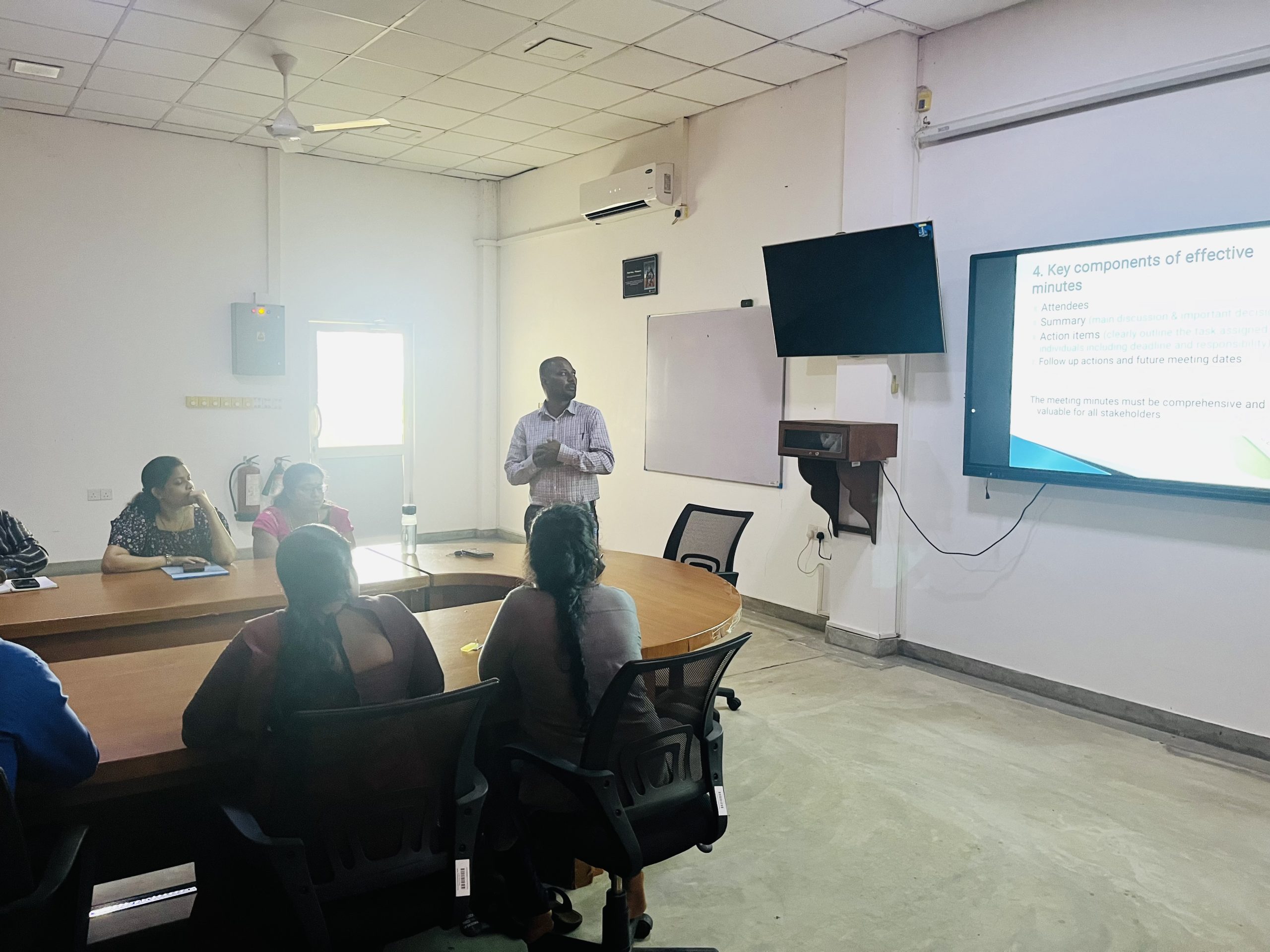 The workshop on “Meeting Minutes Writing” was held on 17th October 2023 from 1.30 pm to 4.30 pm. at the e-learning room, Trincomalee Campus. Mr. S. Sivarasah, Assistant Registrar, Faculty of Communication and Business Studies and Studentsโ Affairs, Trincomalee Campus served as the resource person and the Non-Academic staff of the Trincomalee campus attended the workshop as participants.